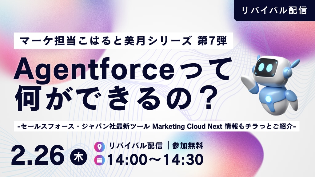 【2026年1月28日(水)14:00~15:00】大好評につき再度配信決定!!Salesforceの次世代MA、Marketing Cloud Nextとは?-Account Engagement/Marketing Cloudは今後どうなるの?―開催終了2025年12月11日