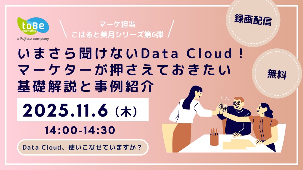 【2025年11月6日(木)14:00~14:30】<録画配信>いまさら聞けないData Cloud!マーケターが押さえておきたい基礎解説と事例紹介【マーケ担当こはると美月シリーズ第6弾】開催終了2025年10月07日