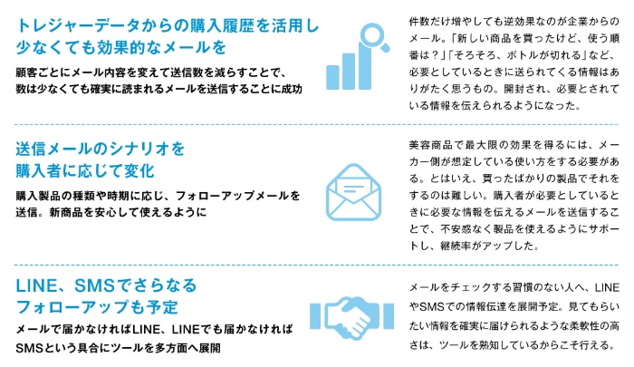 正しい分量を正しい頻度で使うことにより、効果を実感し製品の良さを理解してもらえるはずが、一括送信メールでは正しい使い方を伝えきれない。