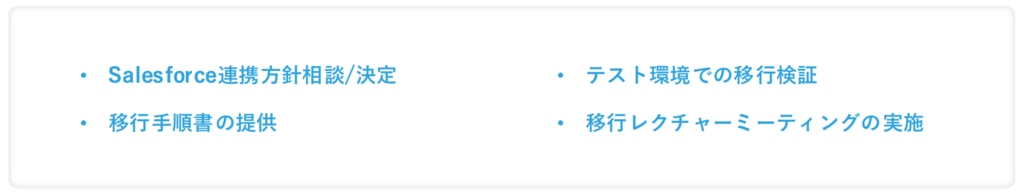 Marketoの契約期限が迫るなか、移行プロジェクトに割ける期 間はわずか1か月と限られていた。自社内で運用を開始するた めには、移行作業と並行してスキルトランスファーや具体的 な⼿順に関する支援が不可欠。そこで、toBeマーケティング が提供する「Marketo移行プラン_Plus」の支援を受けること にした。