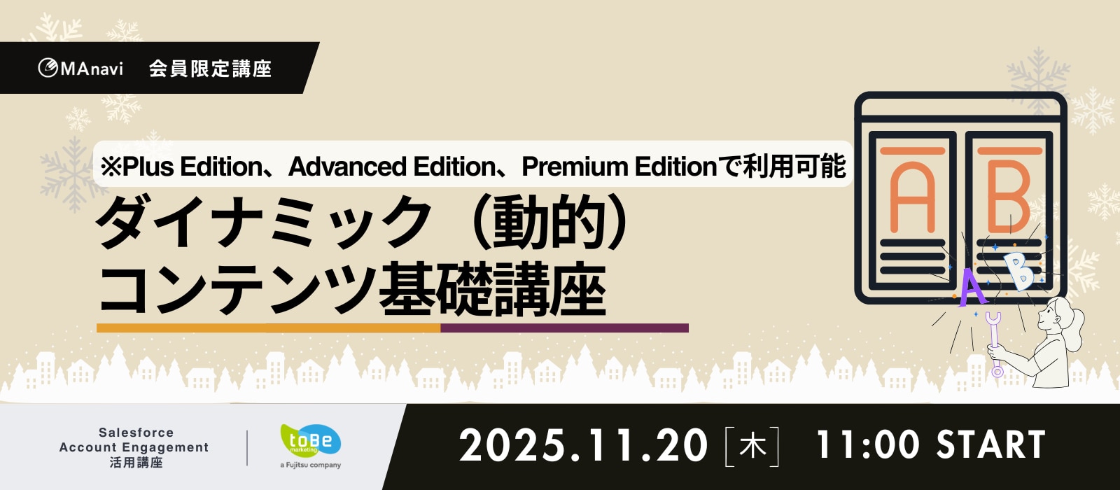 対象 | MAnavi会員限定 ※MAnaviご契約企業の方以外はお申込みいただけませんのでご了承ください。 <注意事項> ・一社複数名でご参加の場合、お一人ずつフォームでお申込みください。 ・MAnavi ご契約企業の従業員様であれば、ユーザーアカウントが発行されていない方でもご参加いただけます。 |