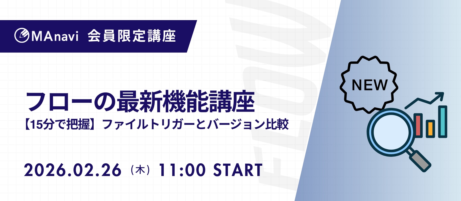 タイトル | MAnavi講座 | 【15分で把握】フローの最新機能講座 〜ファイルトリガーとバージョン比較〜 |