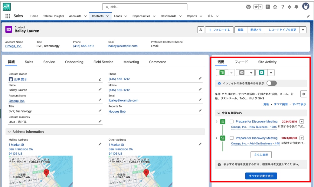 この機能により、様々なアクティビティが、Salesforceのリードや取引先責任者レコードのタイムラインに表示できる標準的な方法です。