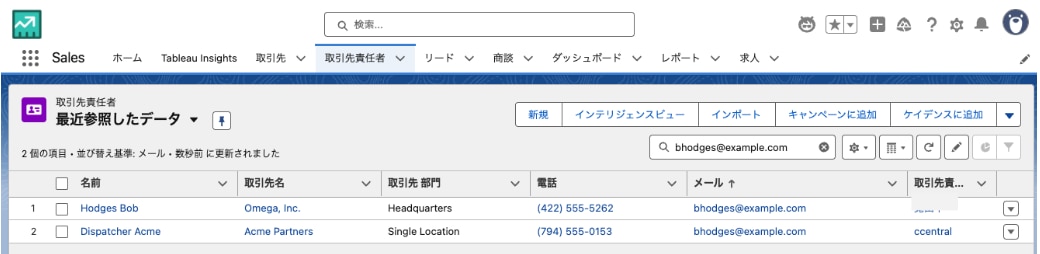 Dispatcher AcmeとHodges Bob の取引先責任者オブジェクトに、同じWeb行動が表示されていることが確認できました。