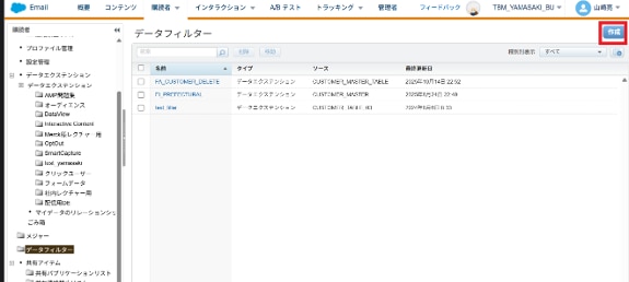 Email Studioの「購読者」タブから「データフィルター」を開き、「作成」を選択します。