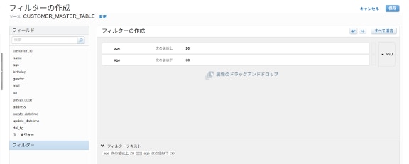 20代以上と30代以下の条件を2つ作成しANDで囲い保存します。