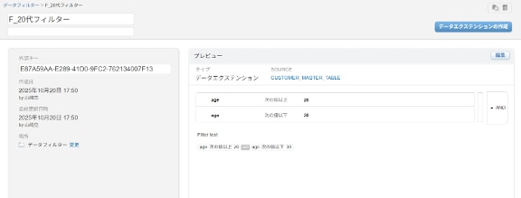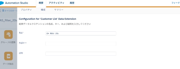 フィルター処理後のデータエクステンション(フィルター済みデータエクステンション)の名前を入力します。