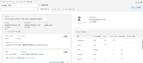 ※このデータエクステンションはアクティビティ実行後に作成されます。