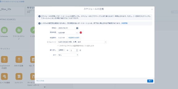 オートメーションの実行設定を行います。今回は毎日日次で実行されるように指定します。