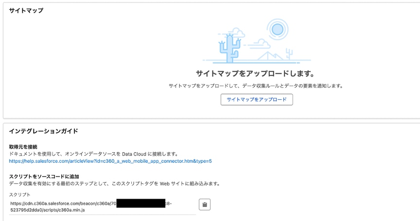 こちらで発行されたタグをWeb サイト上に埋め込むことで、Web SDKタグの設置が完了。つまりWeb SDKからData Cloud (Data360)に送信が行える状態になります。