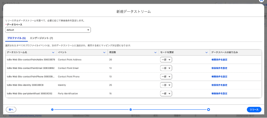 4. 作成されるデータストリーム定義を確認し「次へ」 > 「リリース」をクリック