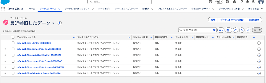 最後に、Data Cloud(Data360)側で送信されたデータを格納するための受け皿(データストリーム/データレイク)を作成していきます。