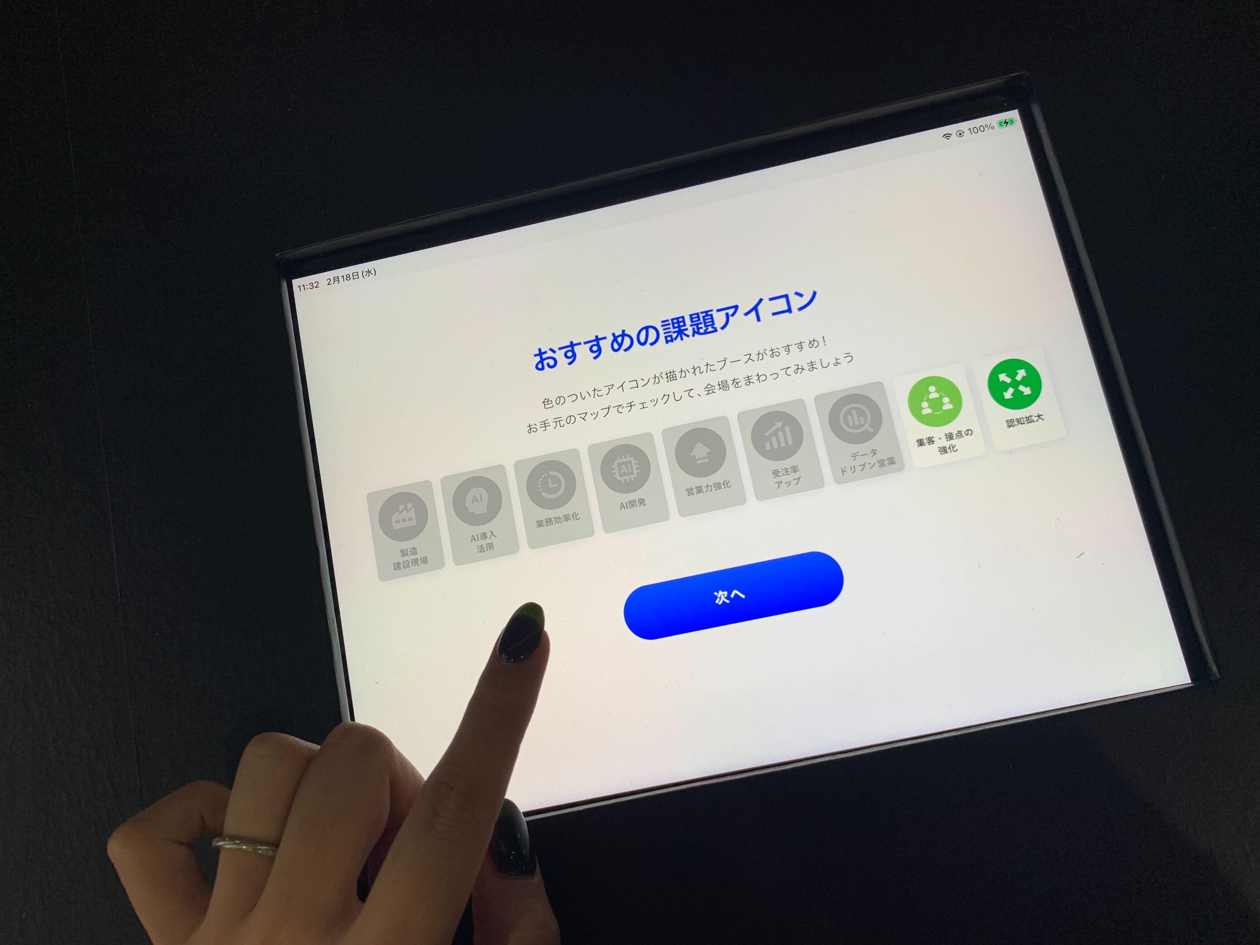 質問に2,3個答えるだけで、その方にあったお勧めのブースカテゴリーを教えてくれます!