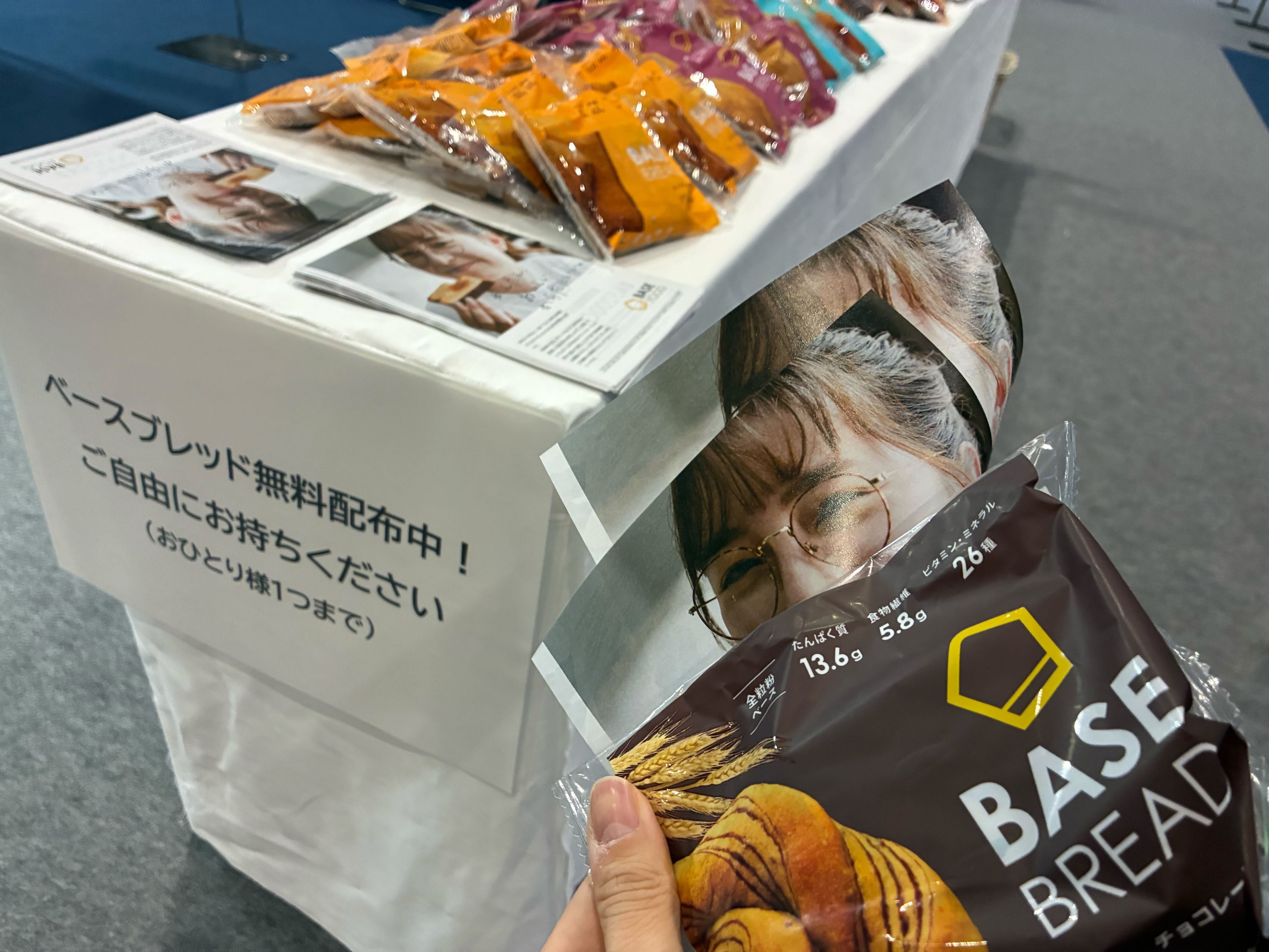 朝早くブース準備をしていたら、何やら会場のEightラウンジで軽食が配布されているとのことで...ラウンジ足を運んでみるとラウンジテーブルに並べられたBASE BREADが!! 朝ご飯を食べずにきた私はすかさず一つ頂きました。(笑)大人気の、チョコレート味をゲットしました!