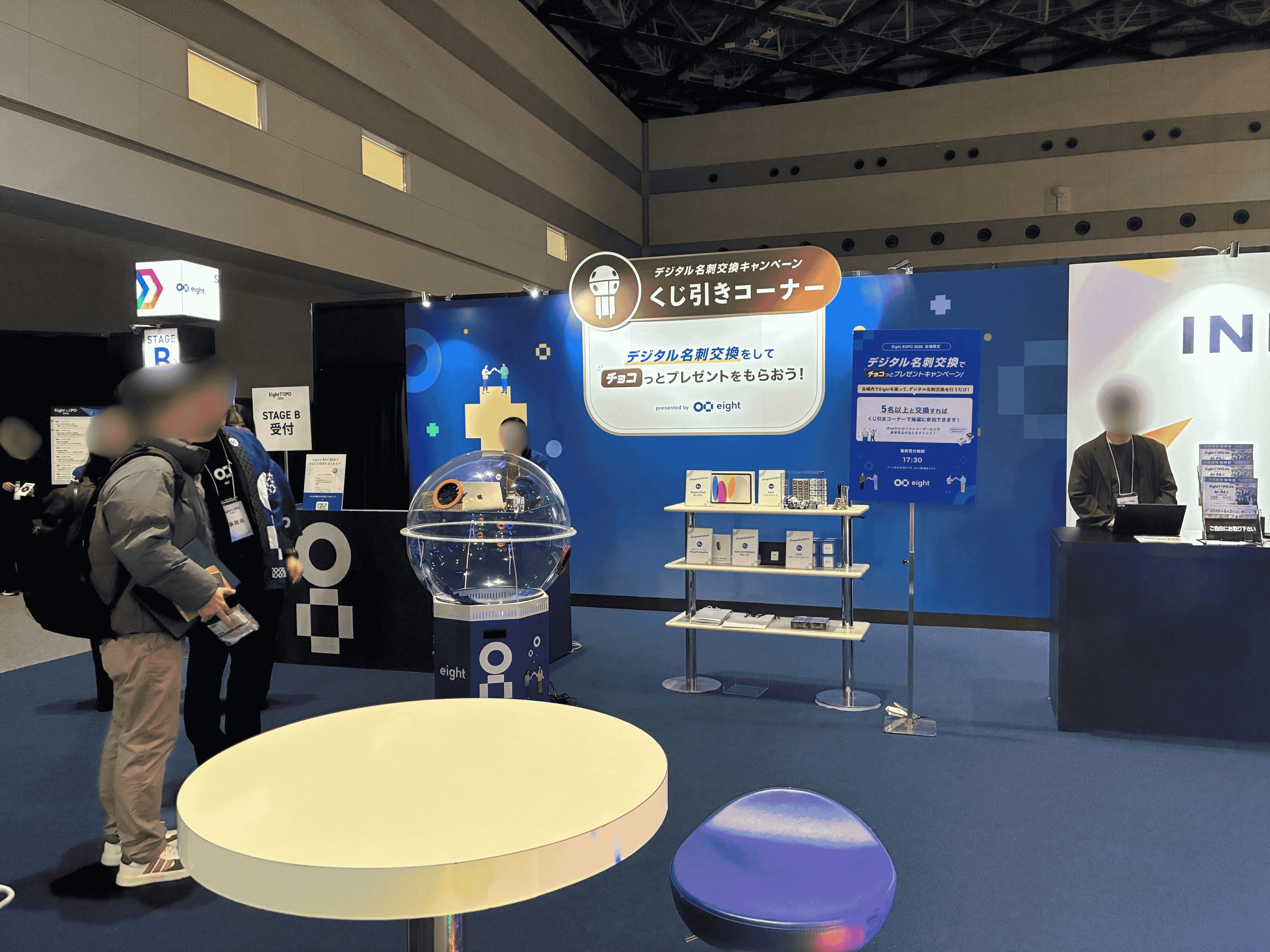 会場では、Eightアプリで名刺を5枚交換すると福引が1回引けるという企画も実施されていました。