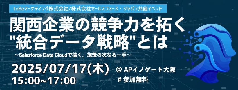 今回は、2025年7月17日(木)に開催されたtoBeマーケティングと株式会社セールスフォース・ジャパン様の共催セミナー「関西企業の競争力を拓く"統合データ戦略"とは ~Salesforce Data Cloudで描く、施策の次なる一手~」の様子をお届けいたします!