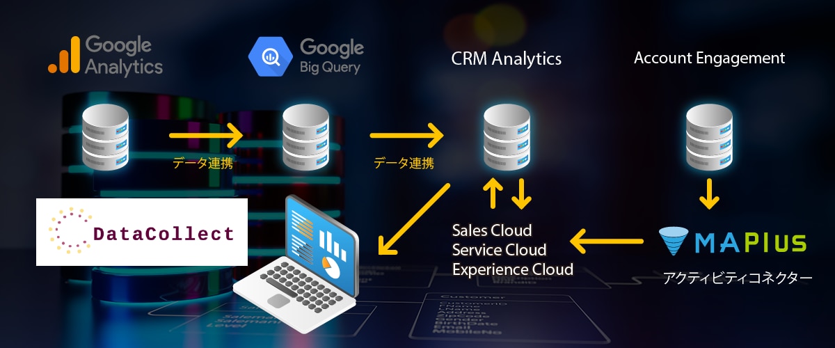 さらに、MAPlus アクティビティコネクターをご利用中のお客様向けに、Account EngagementのアクティビティデータをCRM Analyticsに連携できる「アナリティクス連携オプション」を提供しています。