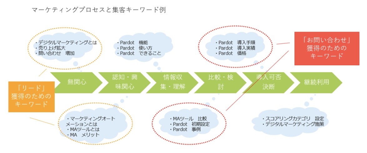 CVの目的に合わせてマーケティングプロセスに沿った集客キーワードの選定が重要になってきます。