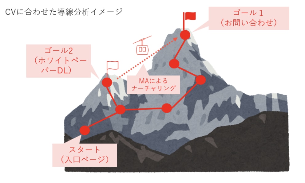 登山のゴールに合わせてルートが変わるのと同じイメージで、CVに合わせてサイト内の導線設計・改善が必要になります。