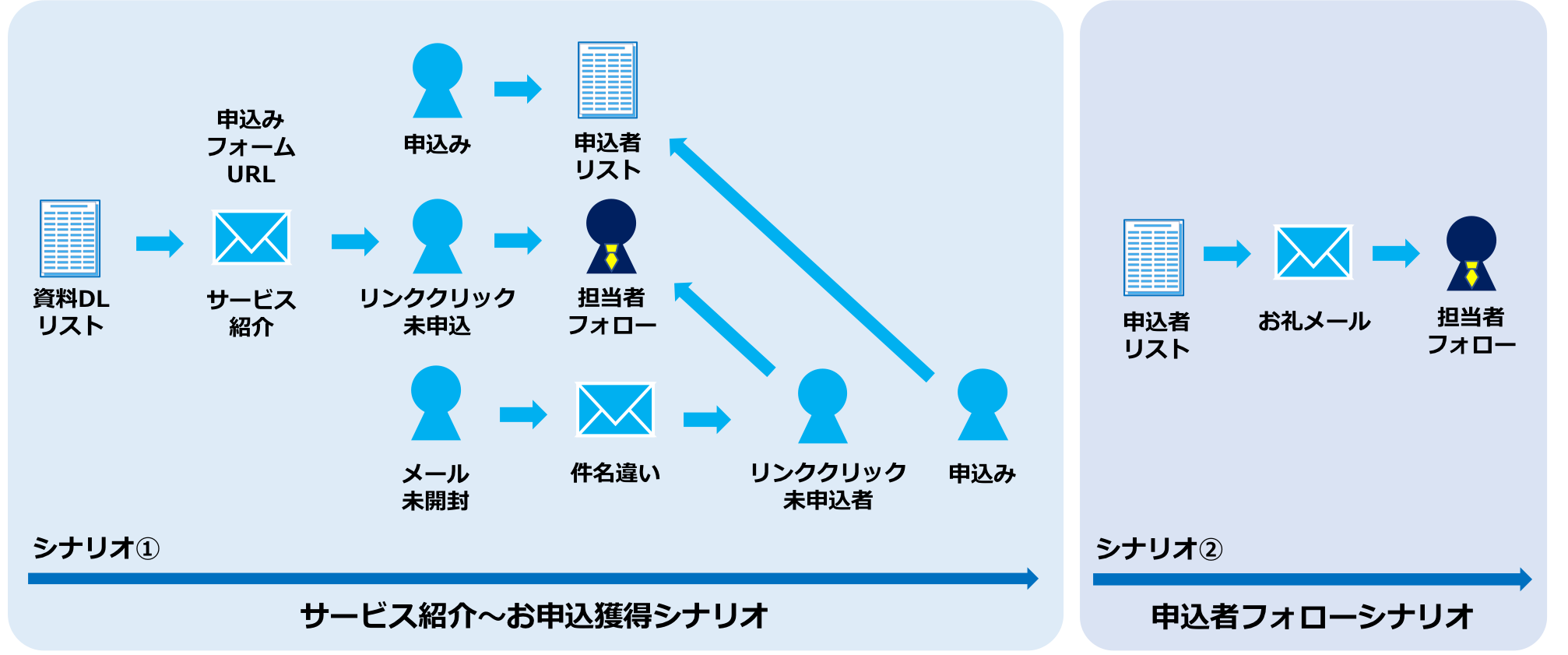 メールだけではなく「電話」なども駆使しながら、取りこぼしがないように対応したシナリオとなっております。