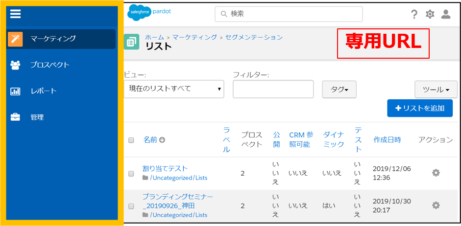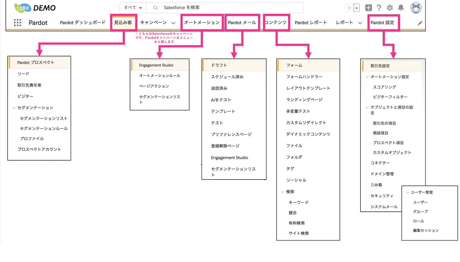 - Salesforceにログインし、Pardot Lightningアプリケーションを起動して利用