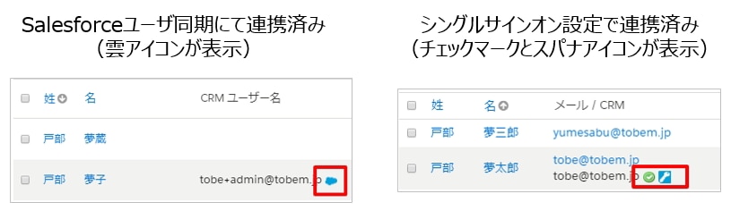 Pardot LightningにはSalesforceユーザ情報を使ってログインします。スムーズにLightningが利用できるよう、ユーザ情報が連携されているか事前に確認することをお勧めします。Account Engagement (旧 Pardot)のユーザ一覧を開き、下記のアイコンが表示されているユーザーは、連携されている状態であることを示します。