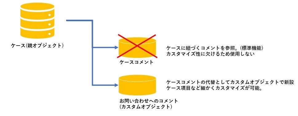 - ケースコメント内の項目、ページレイアウトは一切変更が出来ない(カスタマイズ性に乏しい)