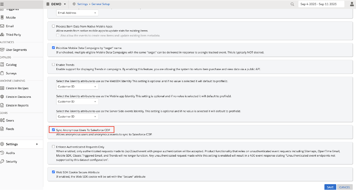 1-3.「Sync Anonymous Users To Salesforce CDP」にチェックします。