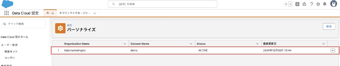 以上でPersonalizationのデータがData Cloudに連携されました。