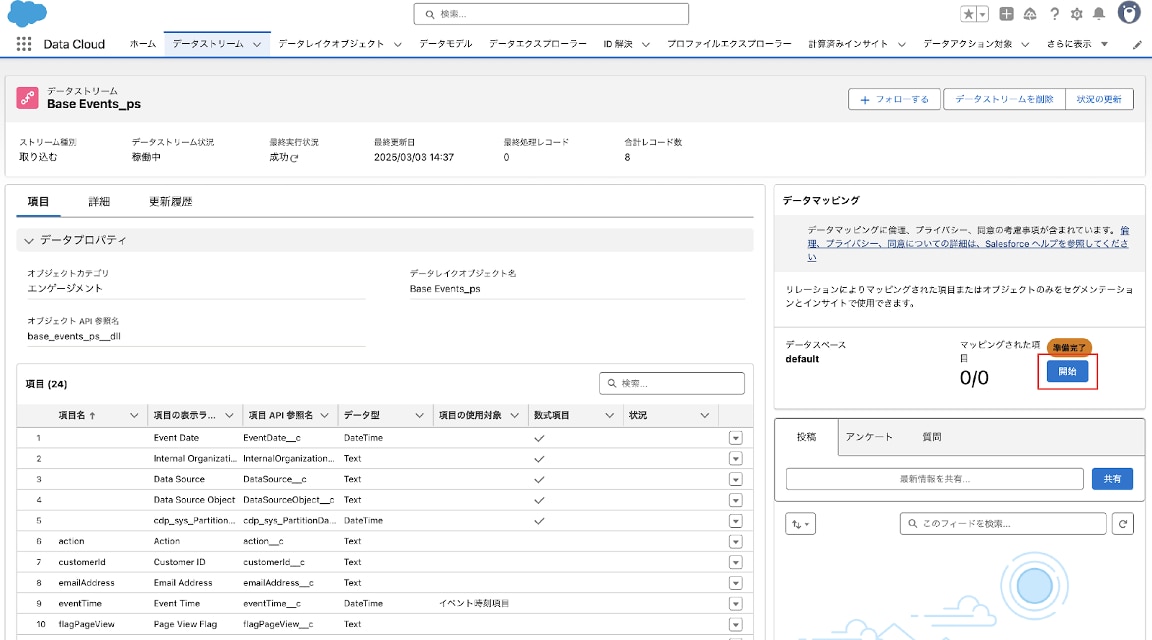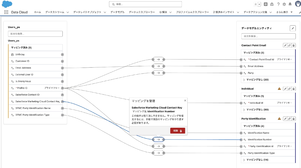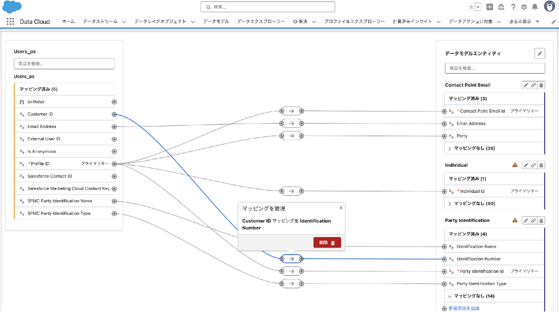 Data Cloudでデータを扱うためには、データモデルオブジェクトに対して連携したデータをマッピングする必要があります。