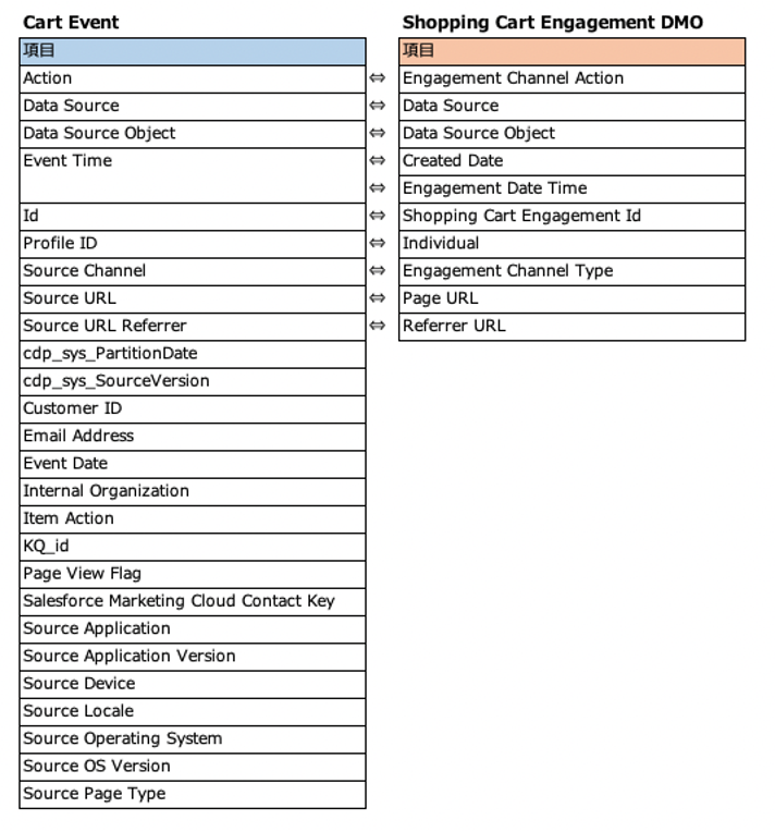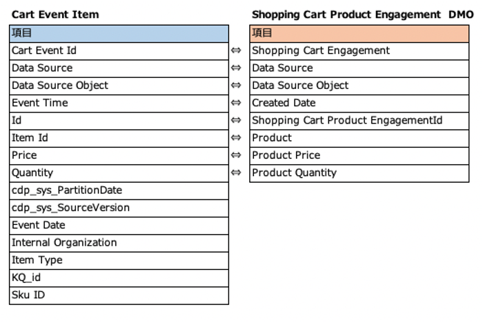 ・Cart Event Items → Shopping Cart Product Engagement DMO