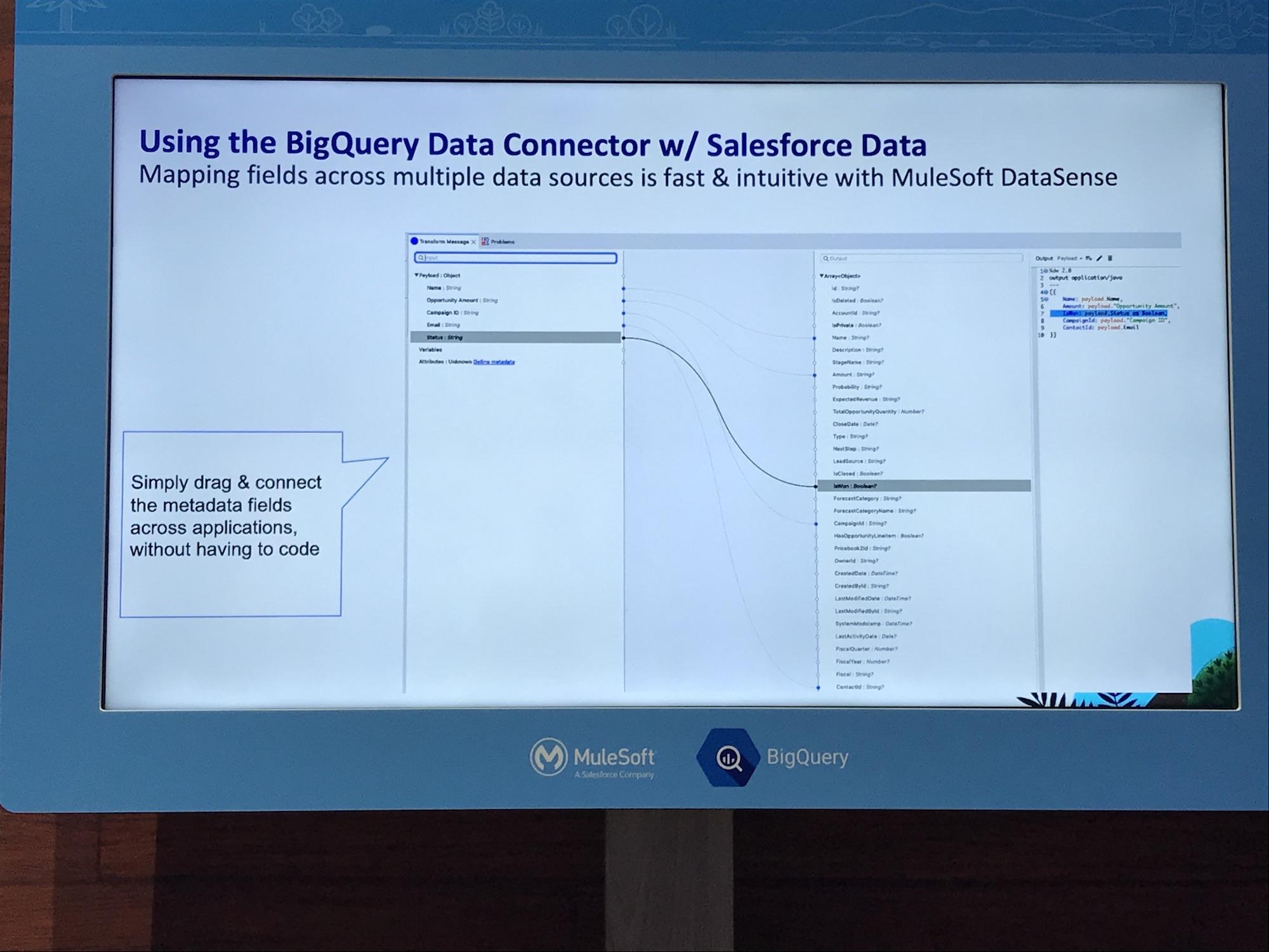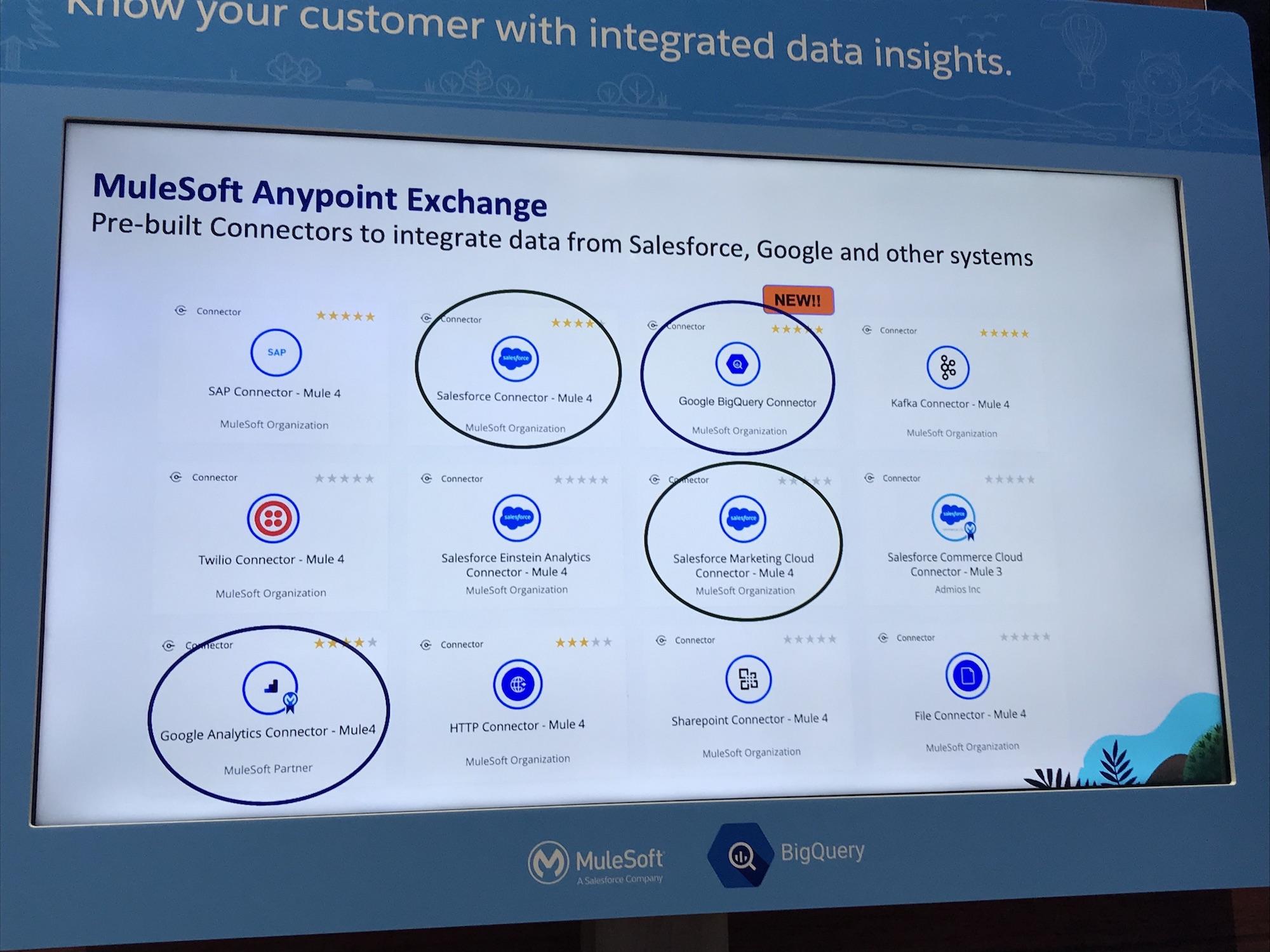 Mulesoftには、Google Analyticsコネクター、BigQueryのコネクター、Marketing Cloudのコネクター、Salesforceのコネクターなどがあり、シームレスに連携ができるようになります。