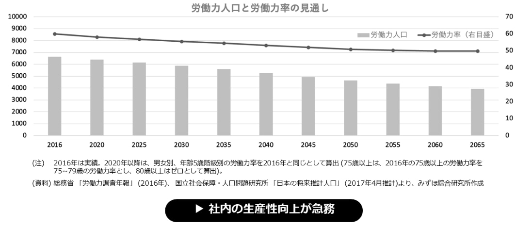 国内では少子高齢化などの影響を受け、労働人口が減少傾向だが、従来と同様の成果を出すために、社内の生産性を向上させることが急務となっています。