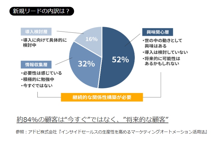 新規リードの中で、今すぐに製品/サービスを導入したいと考えている企業は決して多くありません。