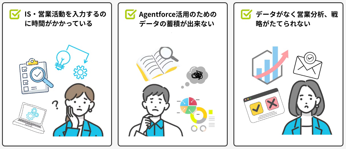 AIが全営業活動を自動記録し、自動でCRMへ入力してくれるため、営業自らが手動で入力する手間がなくなります。