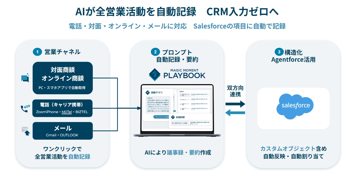 Magic Moment Playbook Captureとは、営業のメール、電話、対面/オンライン商談など、