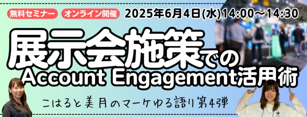 タイトル | マーケ担当こはると美月が語る第4弾 展示会施策で成果を出すためのAccount Engagement活用術 〜ゆるっと語ります〜 |